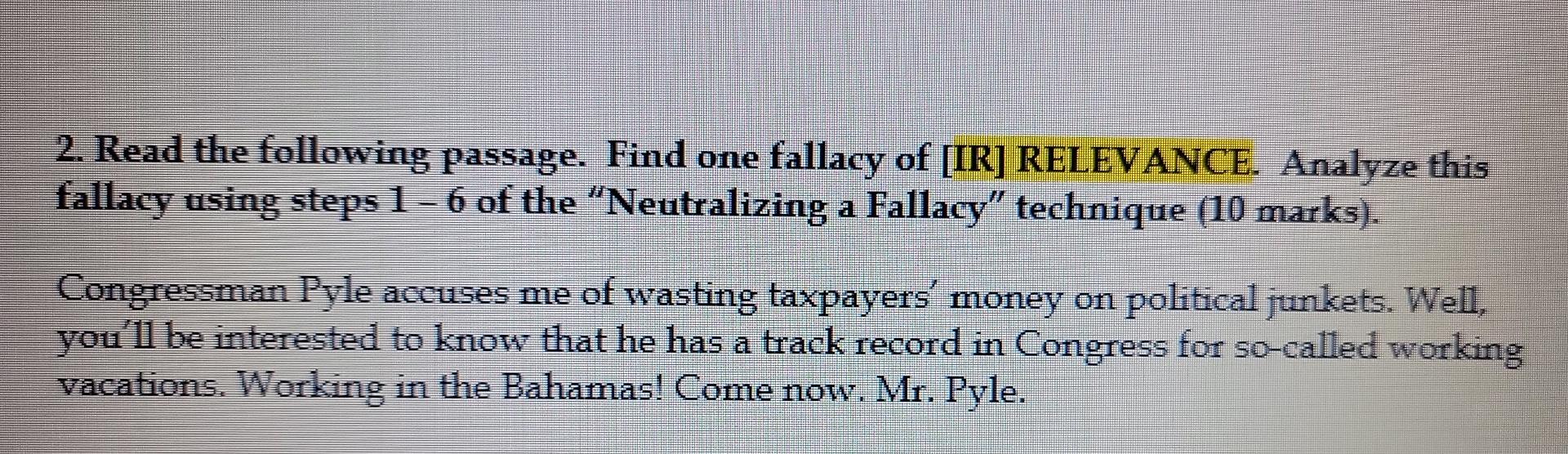 Solved 1. Name the fallacy 2. Identity the criteria for the | Chegg.com