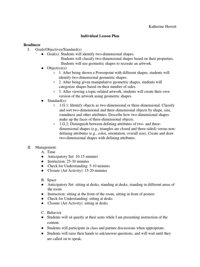 Individual Lesson Plan Readiness | PDF | Shape | Cognition