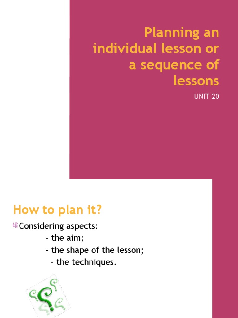 HOW DO WE PLAN AN INDIVIDUAL LESSON OR SEQUENCE OF LESSONS? - TKT ...