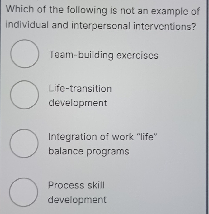Solved: Which of the following is not an example of individual and ...