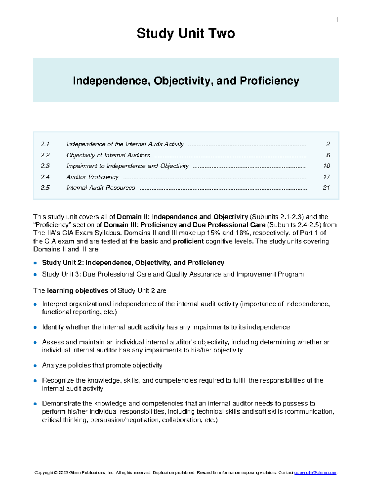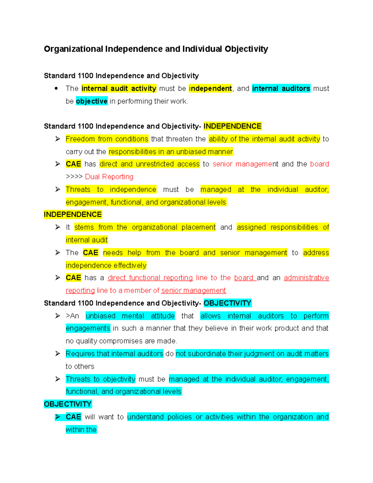 CIA Exam Study Unit 2: Independence, Objectivity, and Proficiency - Studocu