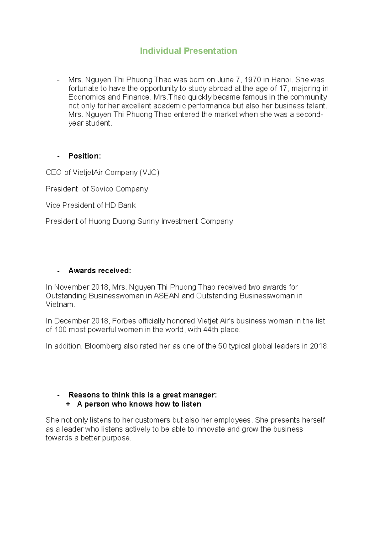 MGT - Individual Presentation - Nguyễn Thị Phương Thảo - Individual ...