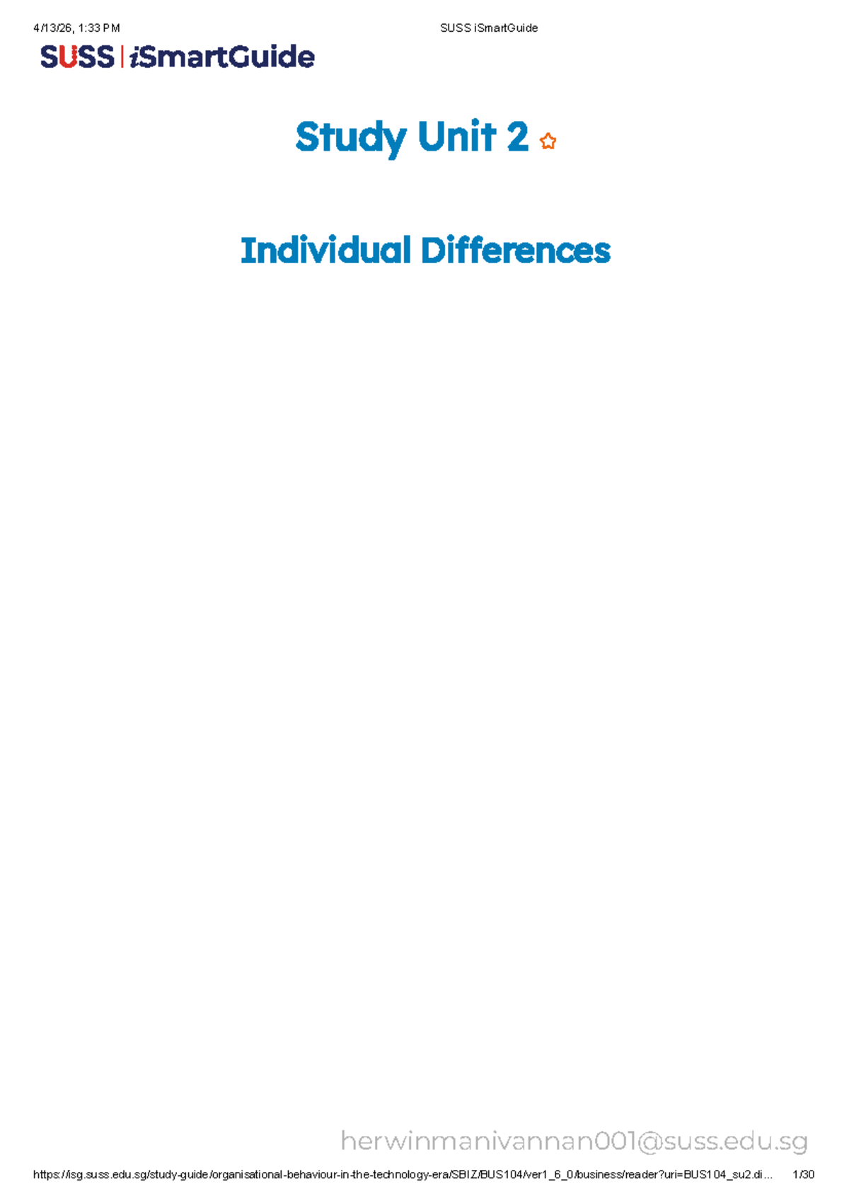 BUS104 SU2 - Understanding Individual Differences in Personality and ...