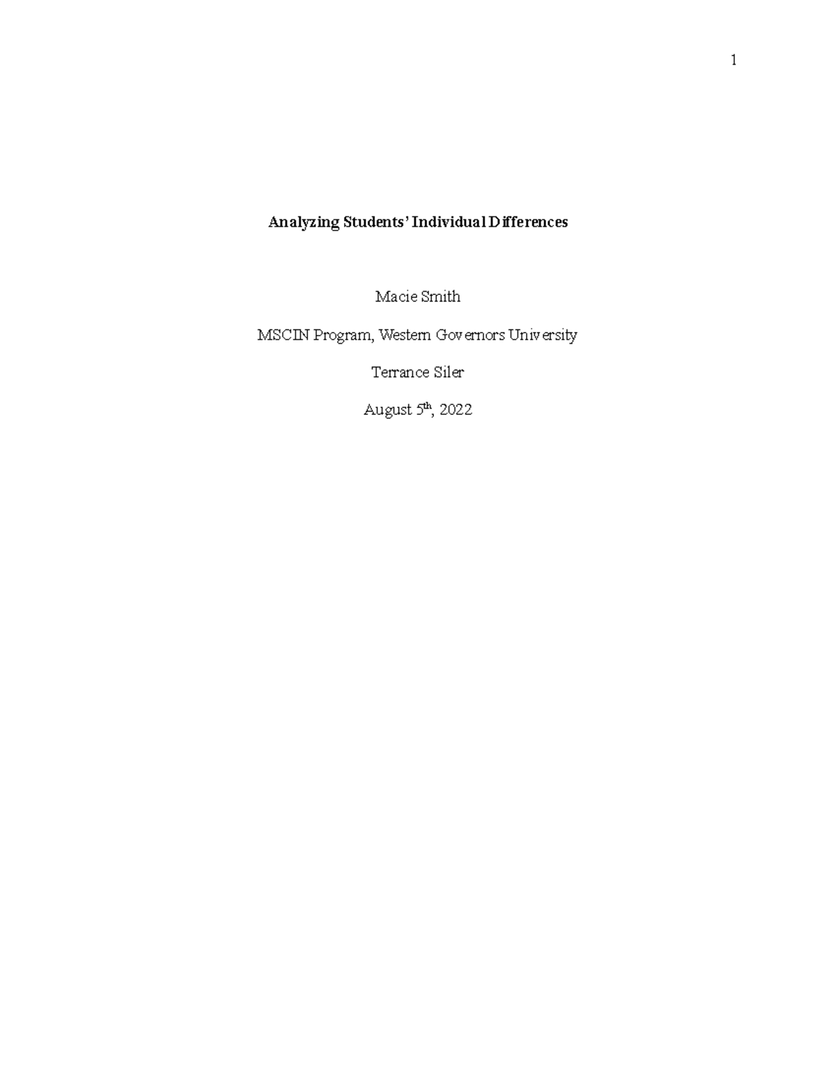 D187 Task 2 - Analyzing Individual Differences in Learning Styles - Studocu