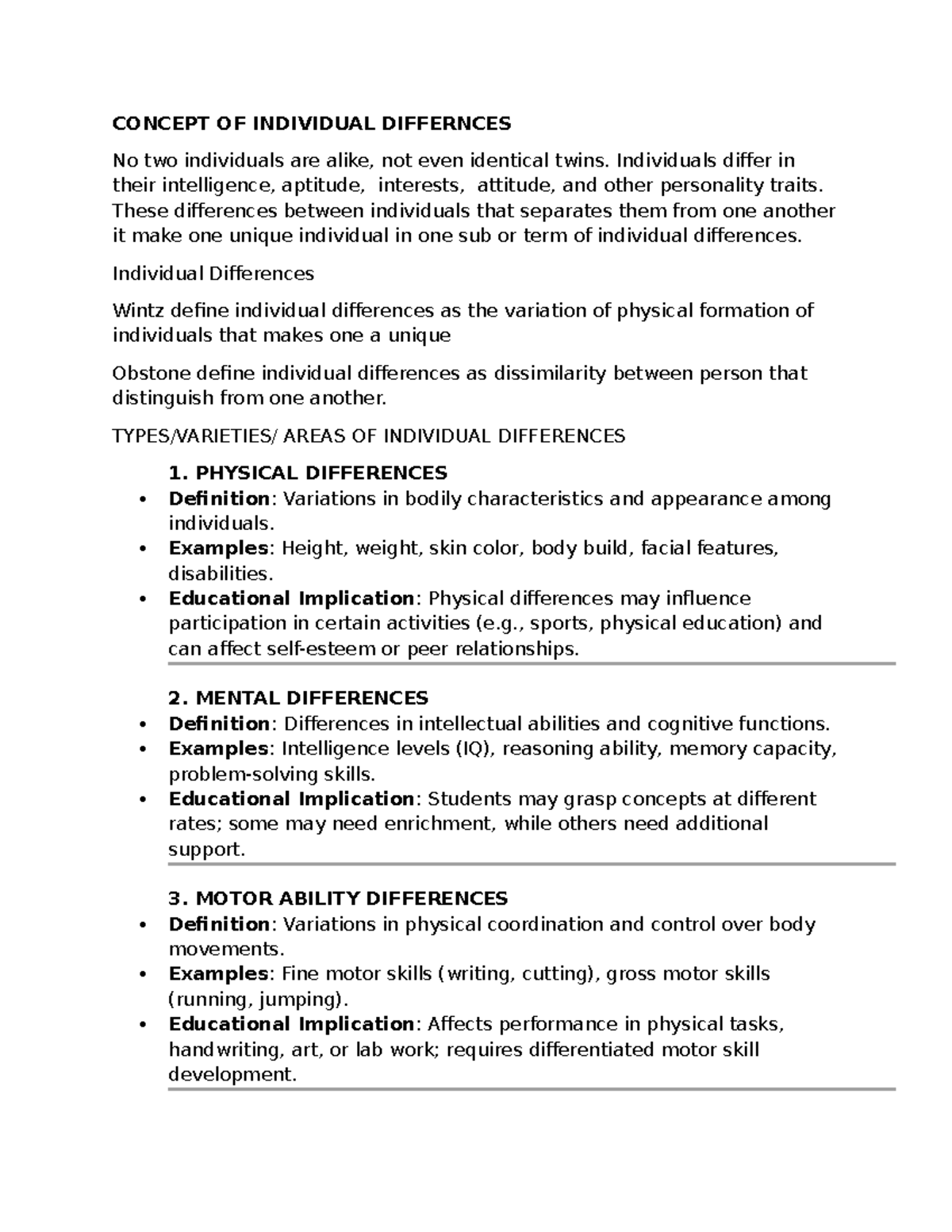 Lesson 7: Understanding Individual Differences in Education - Studocu