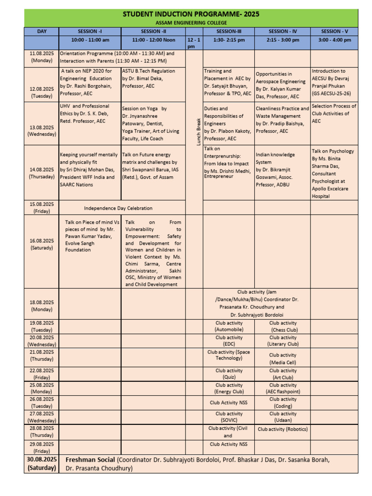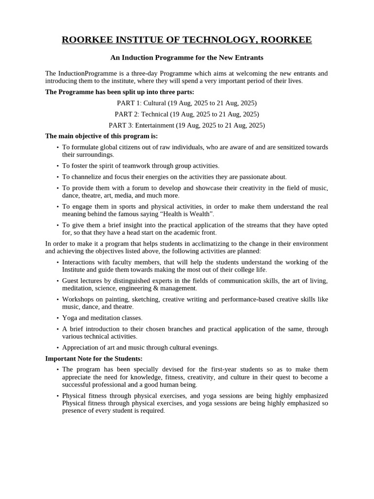 Induction Programme 2025_updated | PDF