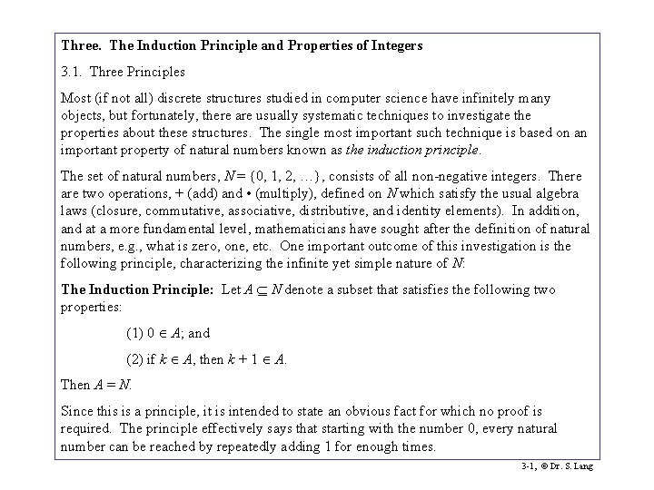 Three The Induction Principle and Properties of Integers