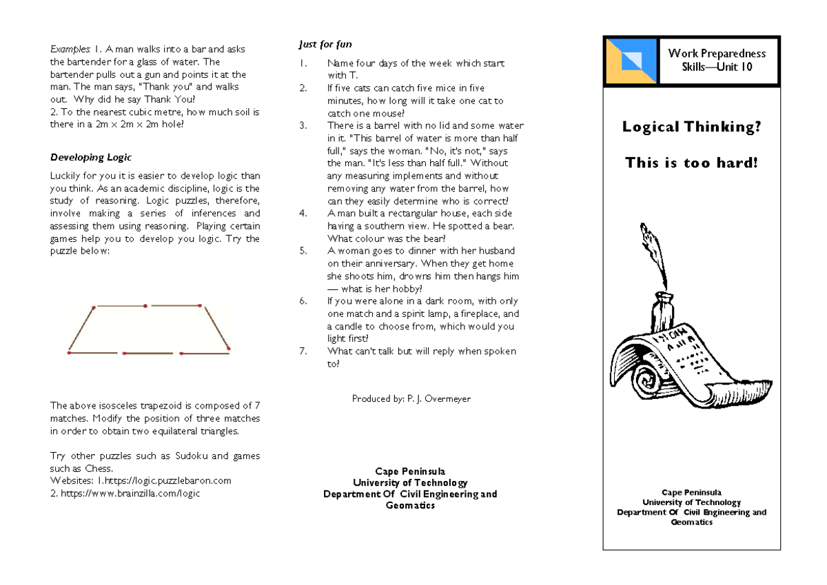 Logical Thinking Exercises and Puzzles - CEG 101 - Studocu