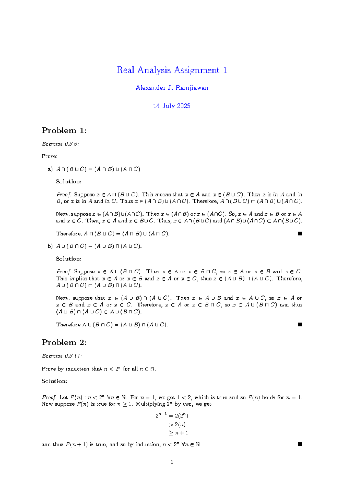Real Analysis Assignment 1 (RA101) Solutions and Proofs - Studocu