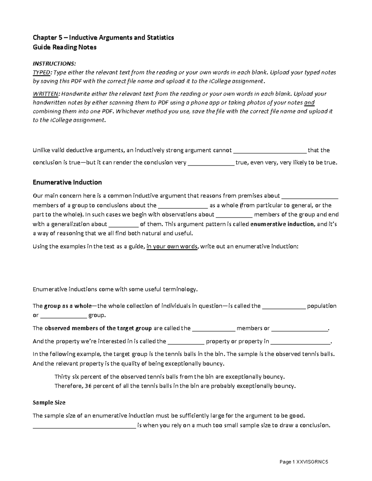 Chapter 5 Guided Reading Notes: Inductive Arguments & Statistics - Studocu