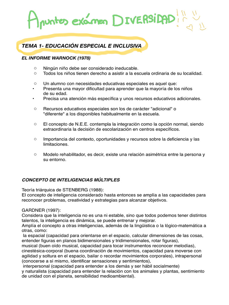 Apuntes Examen Diversidad | PDF | Autismo | Discapacidad intelectual