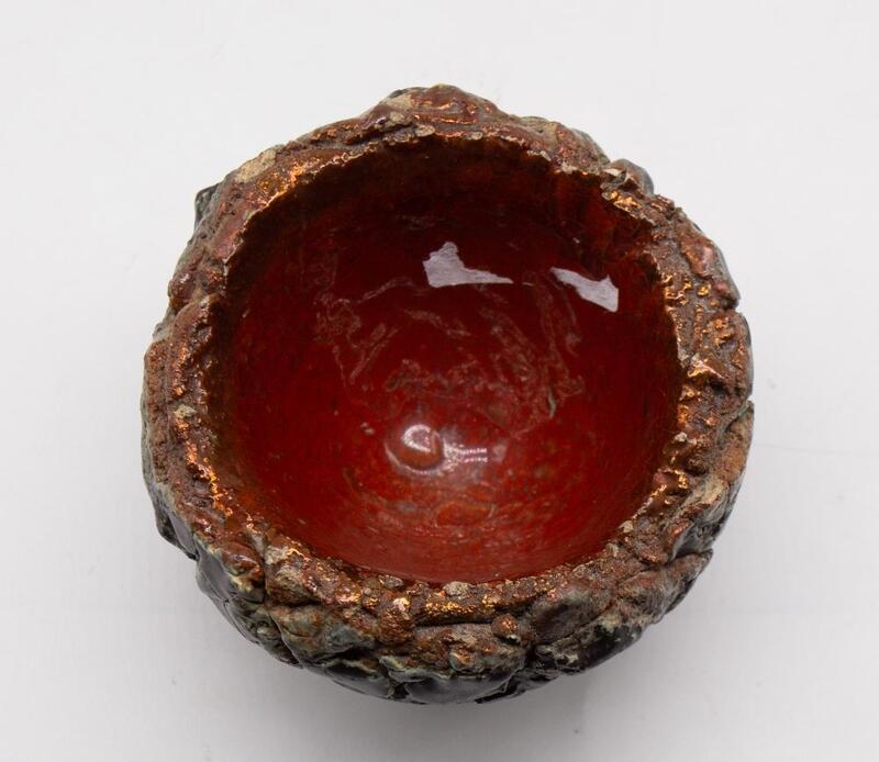 A 20th century studio pottery footed bowl, being of rock like form ...