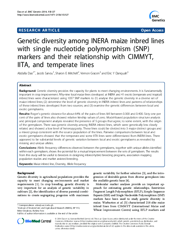 (PDF) Genetic diversity among INERA maize inbred lines with single ...