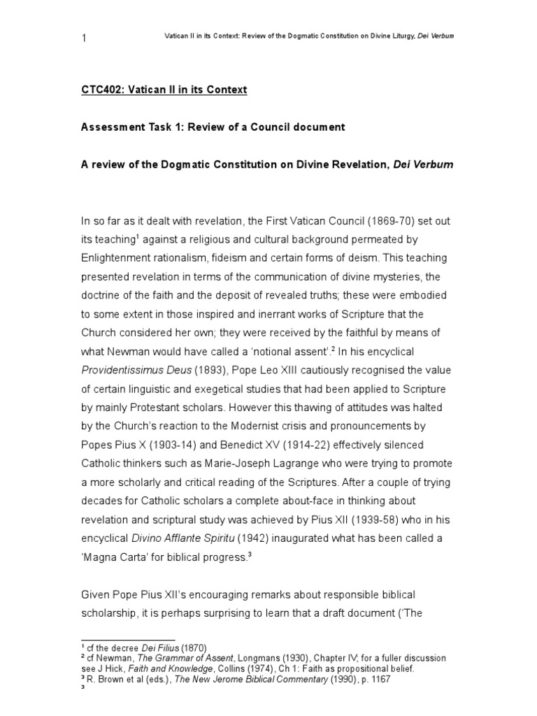 CTC402 Review of Dei Verbum Draft 2 | PDF | Revelation | Second Vatican ...