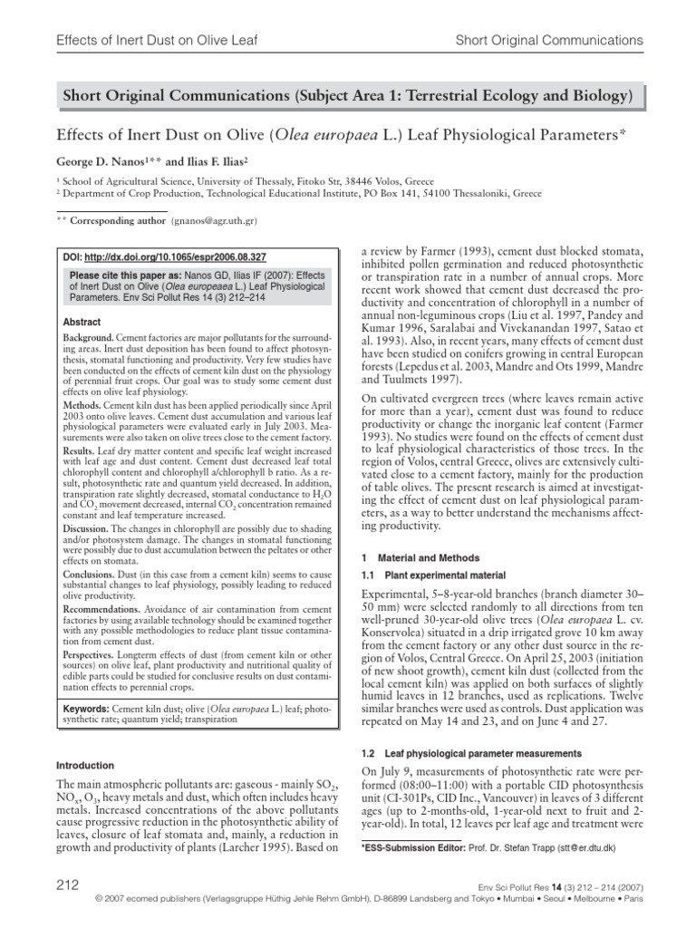 Effects of Inert Dust On Olive | PDF | Leaf | Photosynthesis