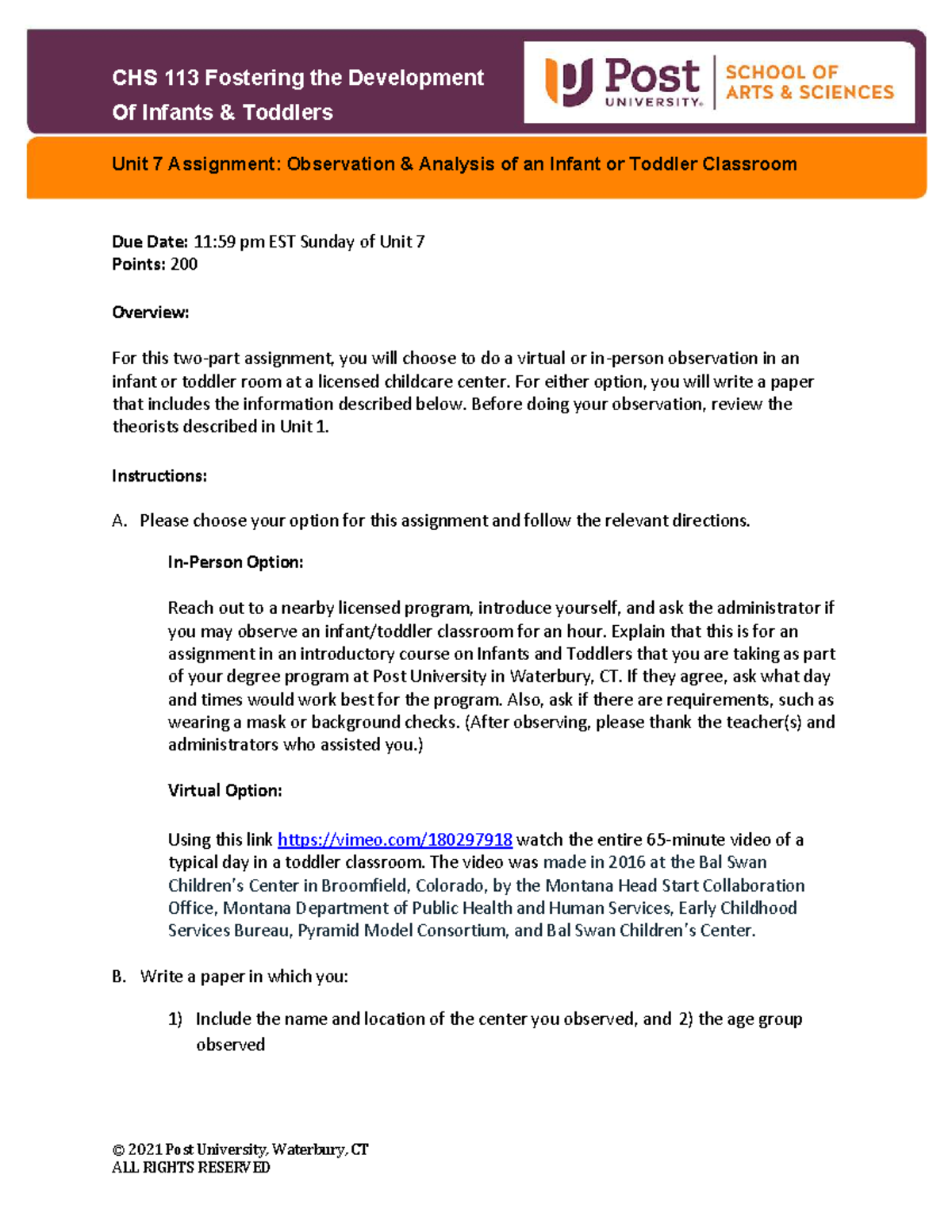 CHS 113 Unit 7 Assignment: Infant/Toddler Classroom Observation ...