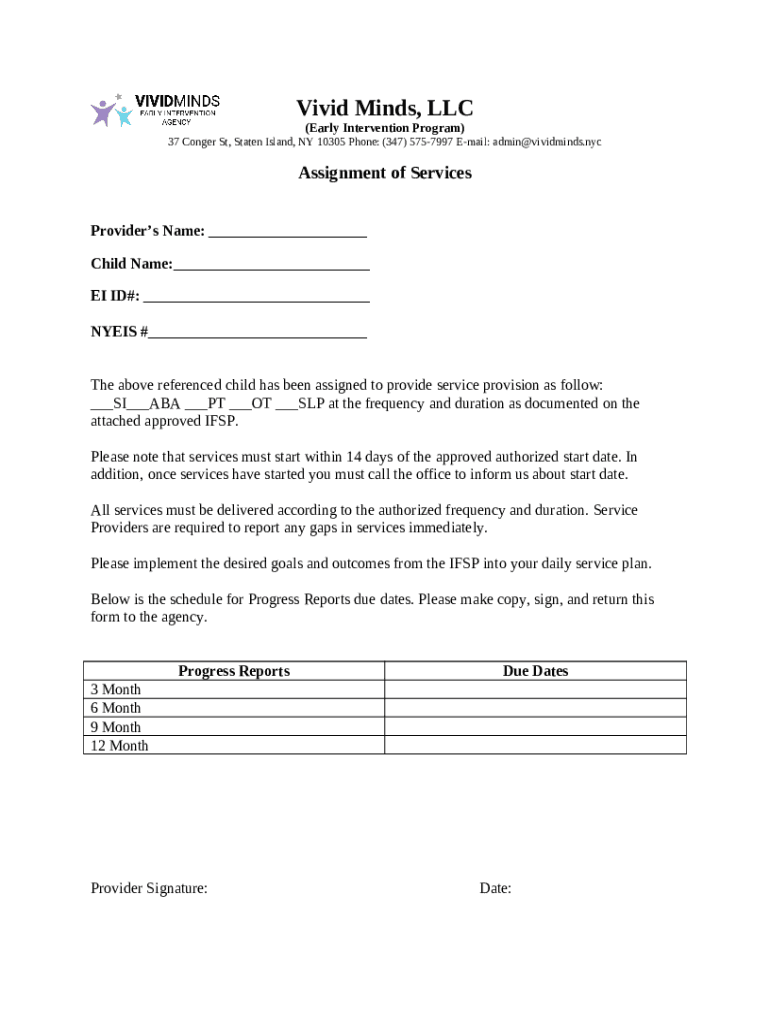 Assignment of Services - Vivid Minds Doc Template | pdfFiller
