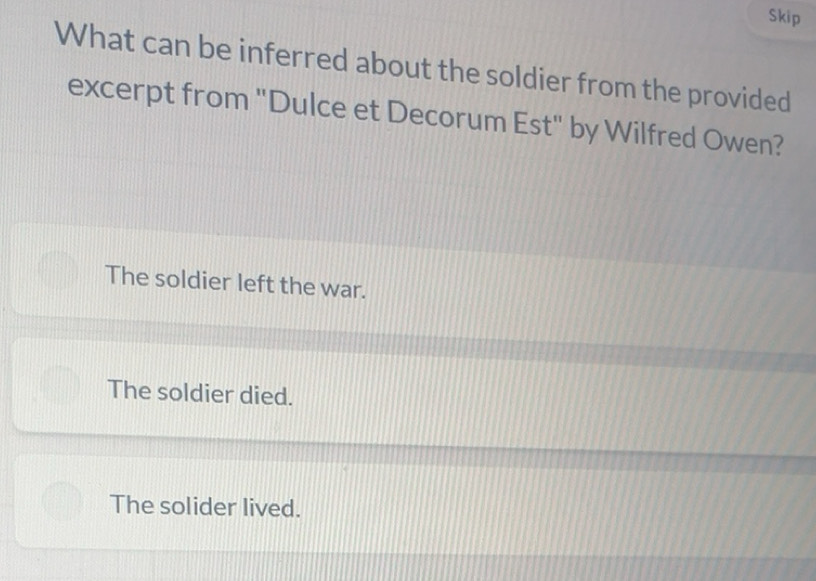 Solved: Skip What can be inferred about the soldier from the provided ...