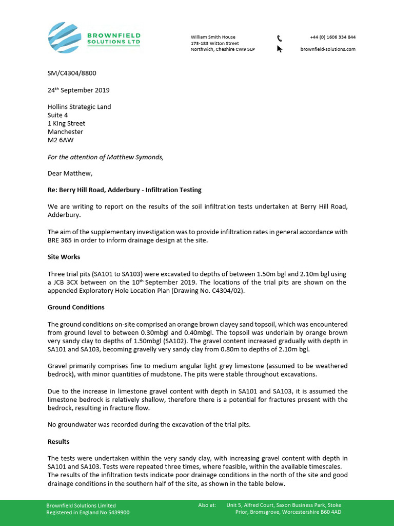 Prelim Drainage Strategy - Infiltration Testing Report 09 - 2019 | PDF ...