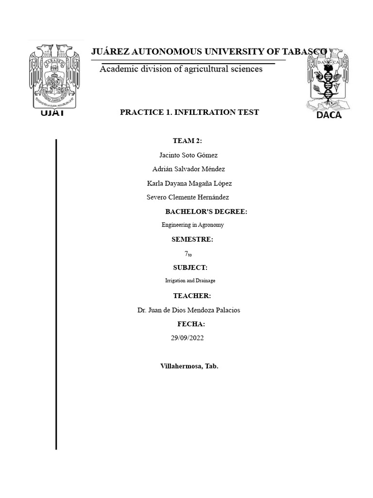 Practice 1 - Infiltration Test | PDF | Soil | Earth Sciences