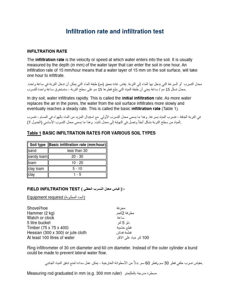 Title: Infiltration Rate Test: T A V V V V A | Download Free PDF | Soil ...