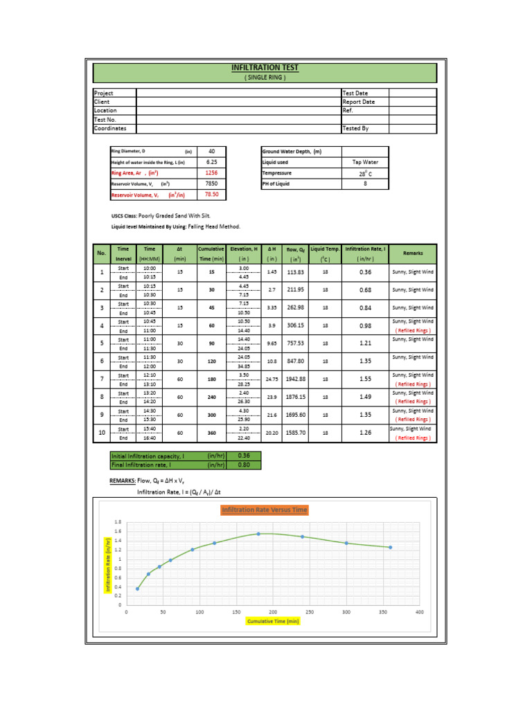 Infiltration Test Report: Single & Double Ring | PDF | Chemical ...