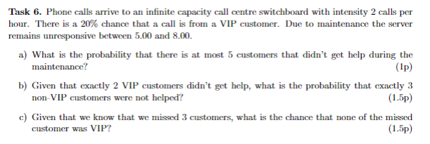 Task 6. Phone calls arrive to an infinite capacity | Chegg.com