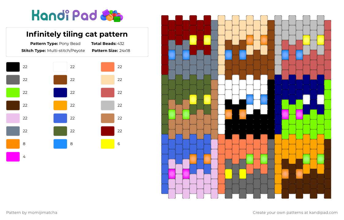 Infinitely tiling cat pattern Pony Bead Pattern - Kandi Pad | Kandi ...