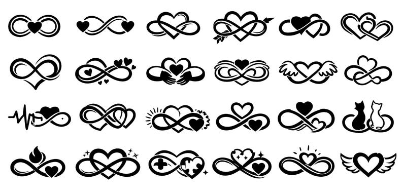 Unendliche Liebe SVG Icons Bundle - 24 einzigartige schwarze Umriss ...