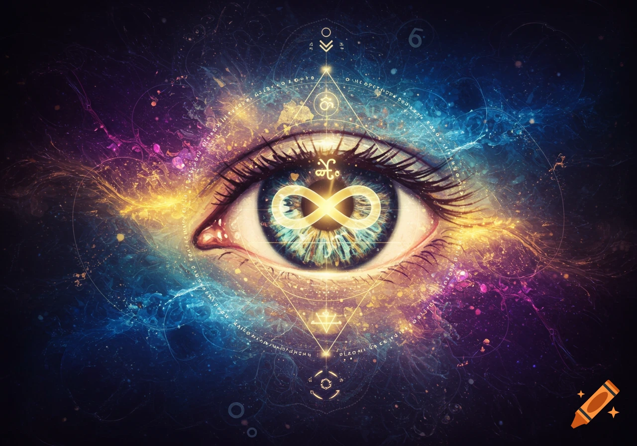 Stylized eye with infinity symbol, surrounded by esoteric golden ...