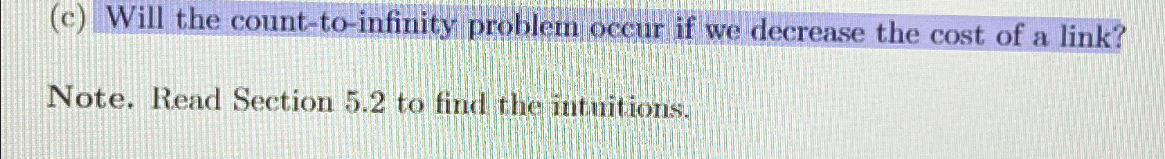 Solved (c) Will the count-to-infinity problem occur if we | Chegg.com