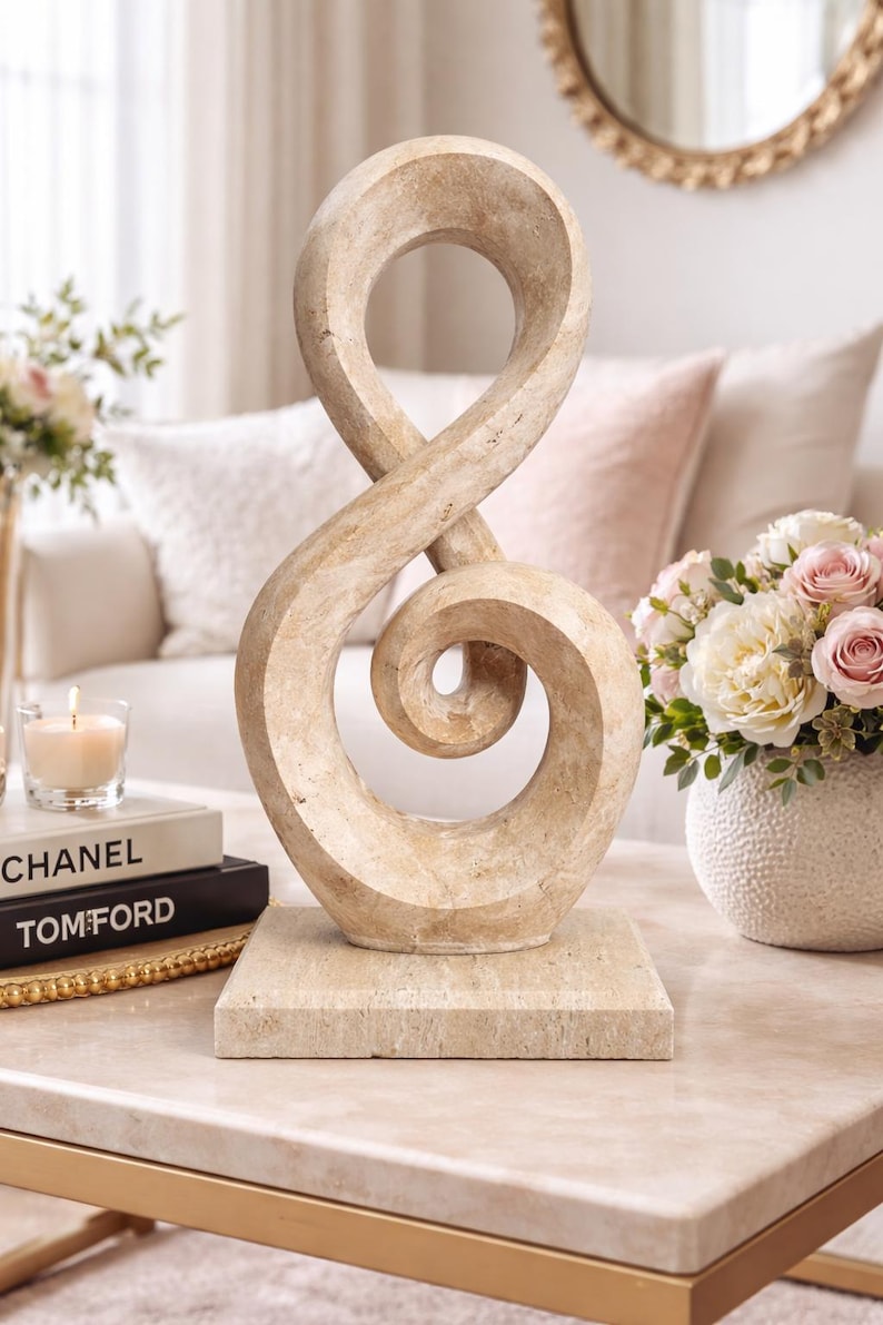 Hand-carved Travertine Infinity Sculpture – Natural Beige Marble Home ...