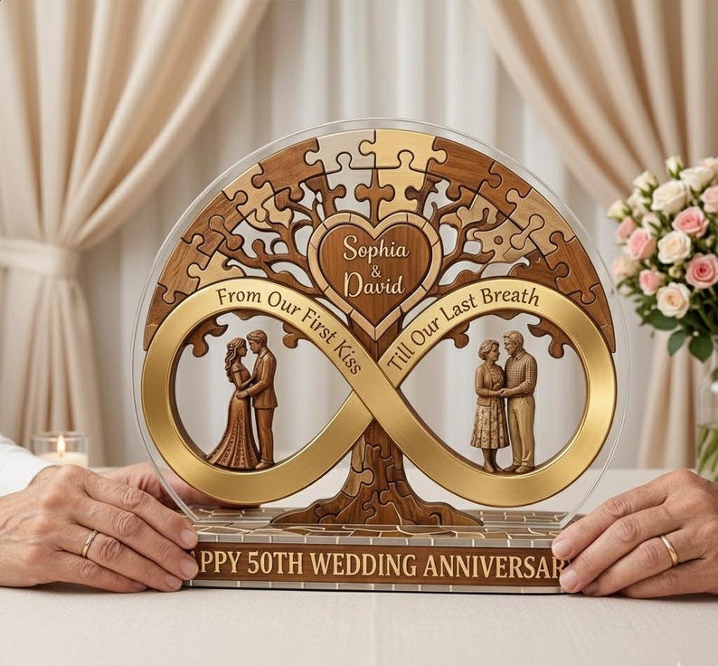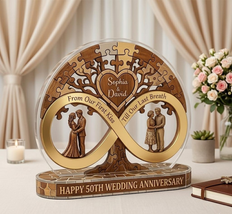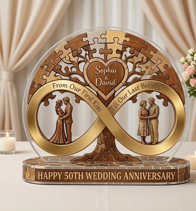 Personalized 50th Anniversary Couple Tree Block, Golden Infinity ...