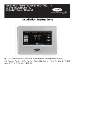 SYSTXCCITN01-A - Carrier SYSTXCCITN01-A - Carrier Infinity Touch ...