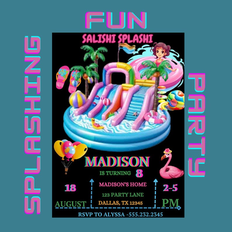 Water Slide Birthday Splash Party Invitation for Summer Pool Party ...
