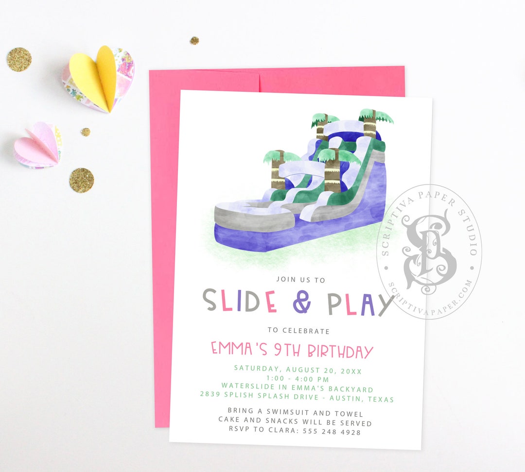 Waterslide Birthday Party Invitation Inflatable Water Slide - Etsy