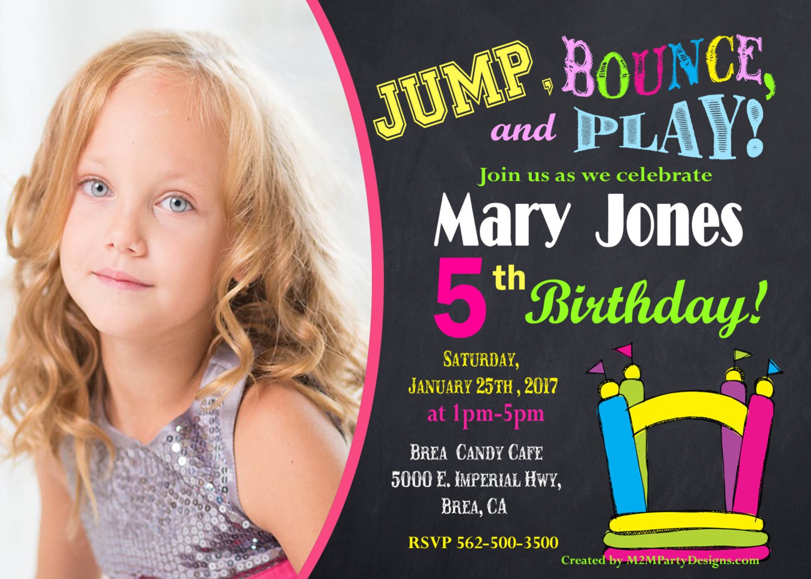 Inflatable Bounce House Printable Invitation Chalkboard Photo Digital ...