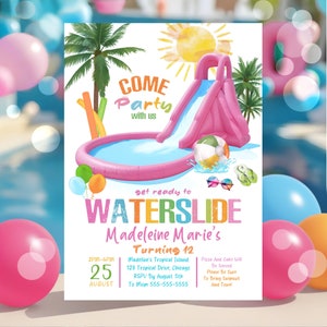 Editable Waterslide Birthday Invitation, Summer Pool Party, Splash ...