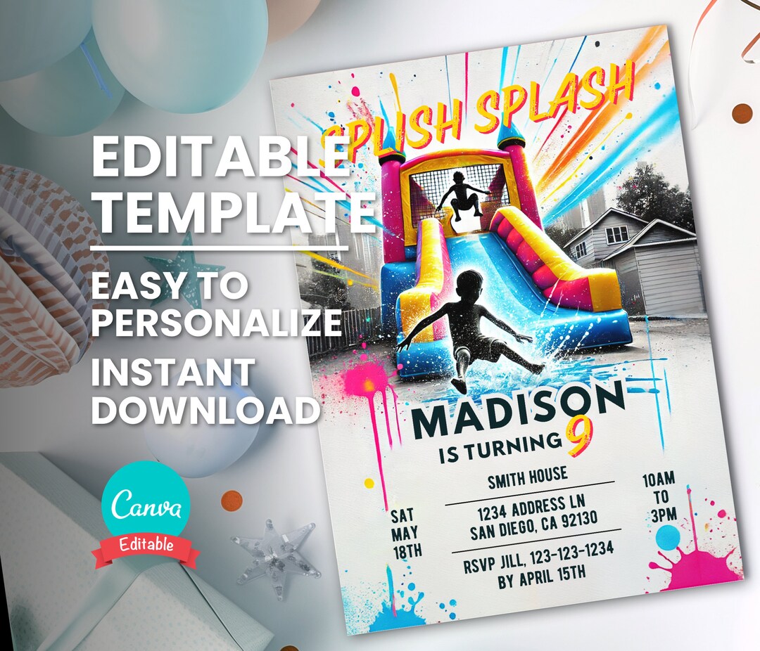 Waterslide Birthday Invitation. Digital Inflatable Water Party Invite ...