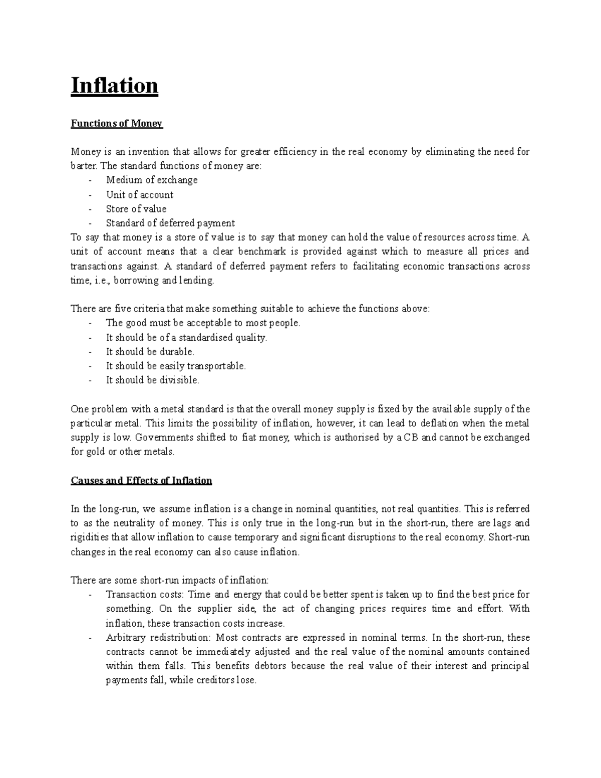 6 Inflation - Google Docs - Inflation Functions of Money Money is an ...