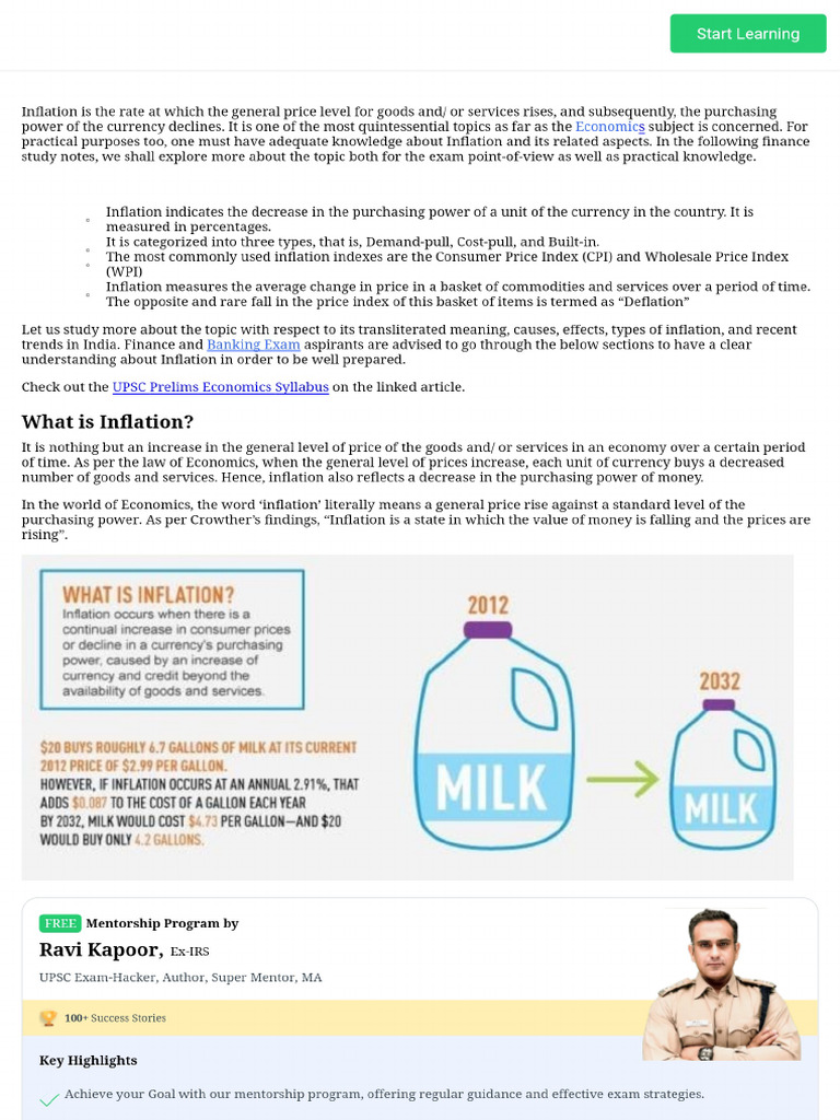 Inflation Economics Study Material Amp Notes | PDF | Inflation ...