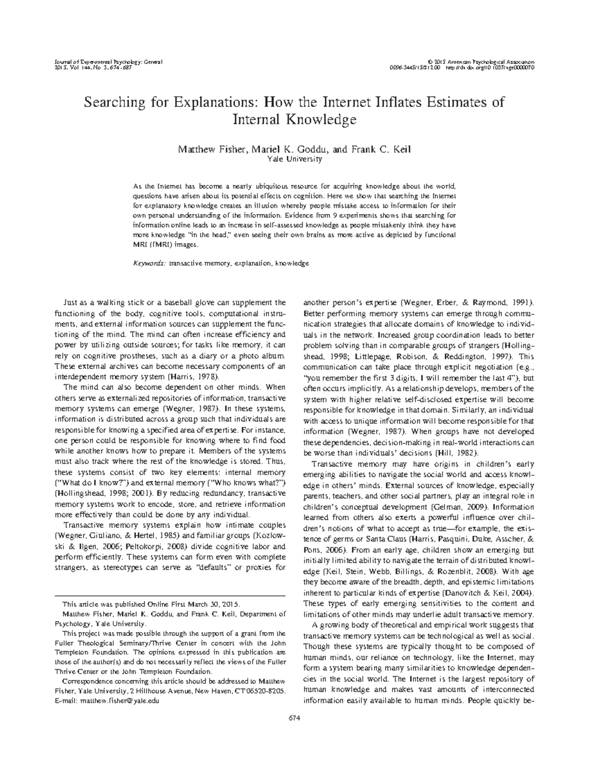 Searching for Explanations: Internet Use and Knowledge Inflation ...