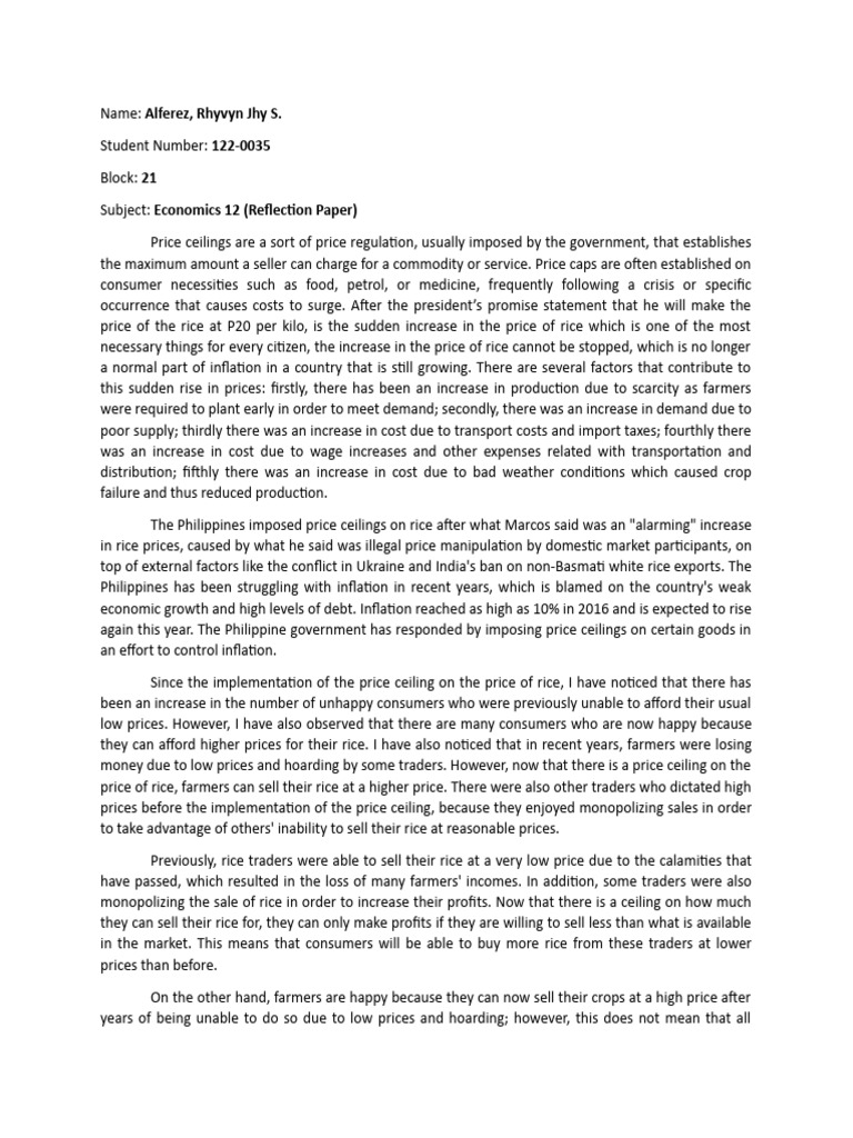 Guevarra, Jeremie C. - Reflection Paper | PDF | Cost Of Living | Inflation