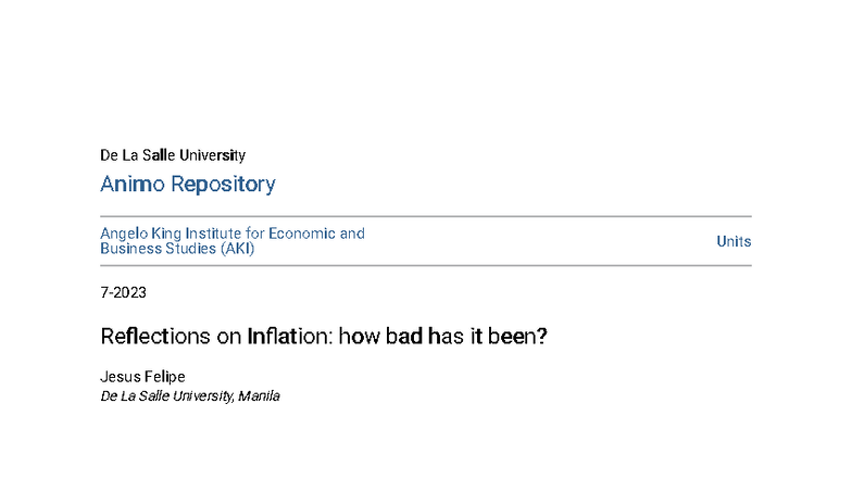 DLSU AKI POLICY BRIEF: Reflections on Inflation Trends (July 2023 ...