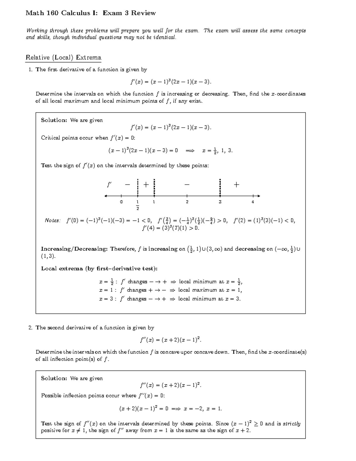 Math 160 Calculus I: Exam 3 Review Solutions and Strategies - Studocu