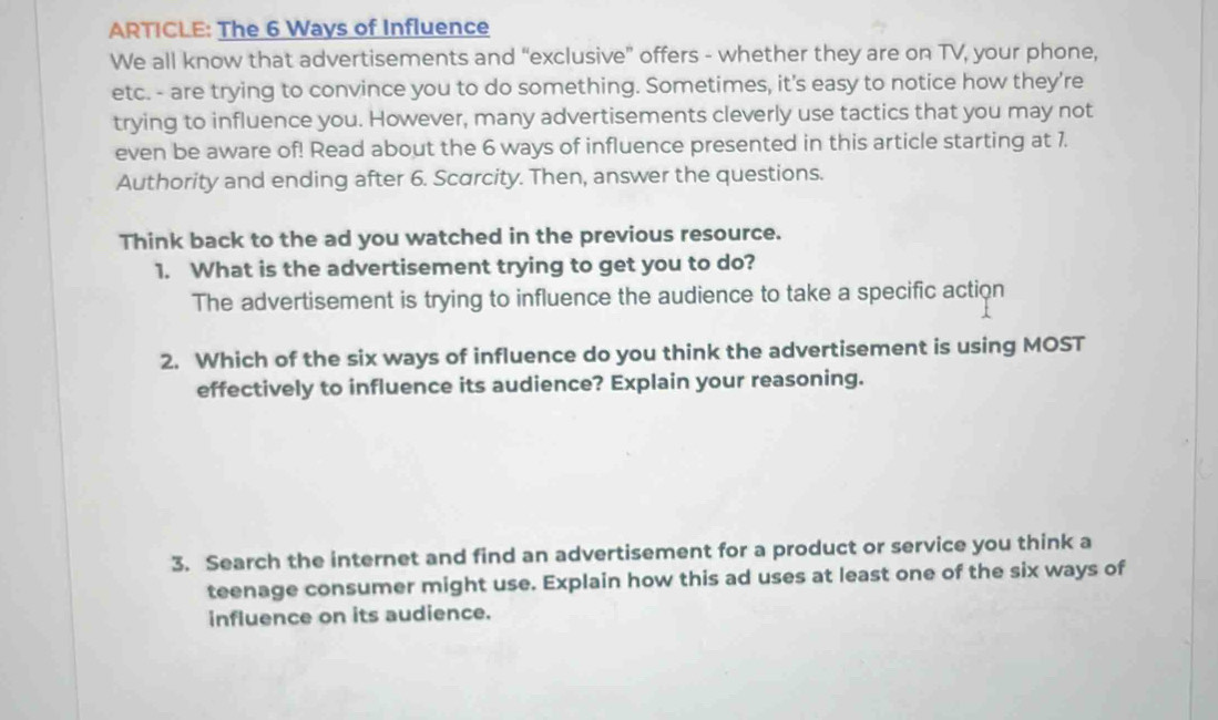 Solved: ARTICLE: The 6 Ways of Influence We all know that ...