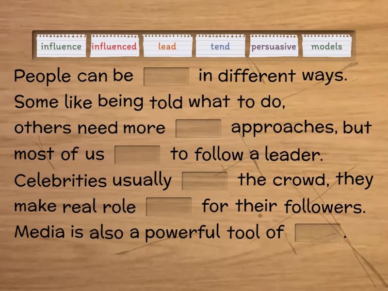 Influence 2 - Unit 3 - Vocabulary - Complete the sentence