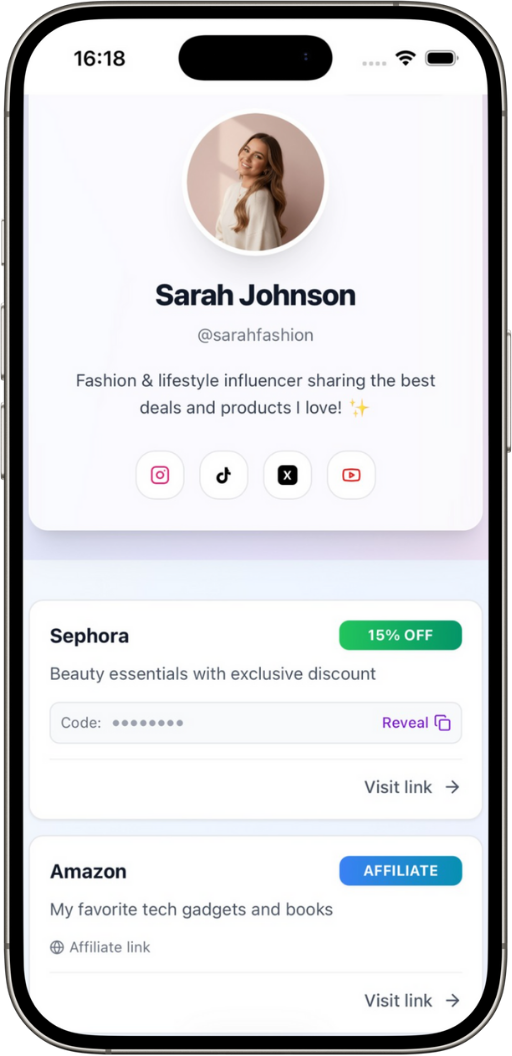 Linktree Influencer Reward Template | Influencer Coupon Codes