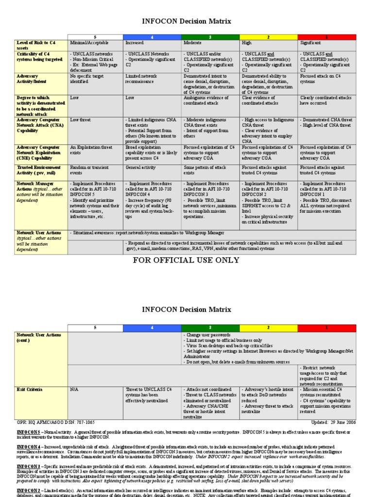 INFOCON Risk Assessment Matrix | PDF | World Wide Web | Internet & Web