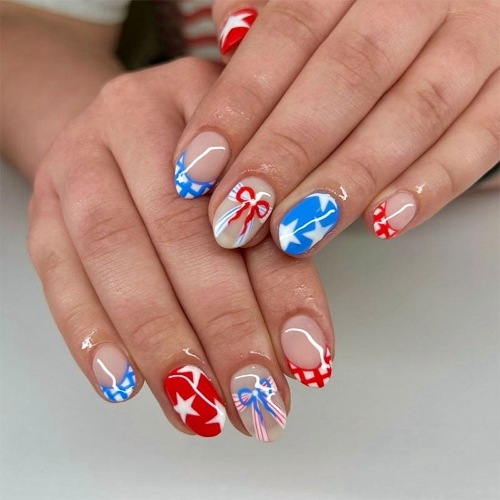 Cross-border hot-selling red and blue color-matching almond nail, star ...